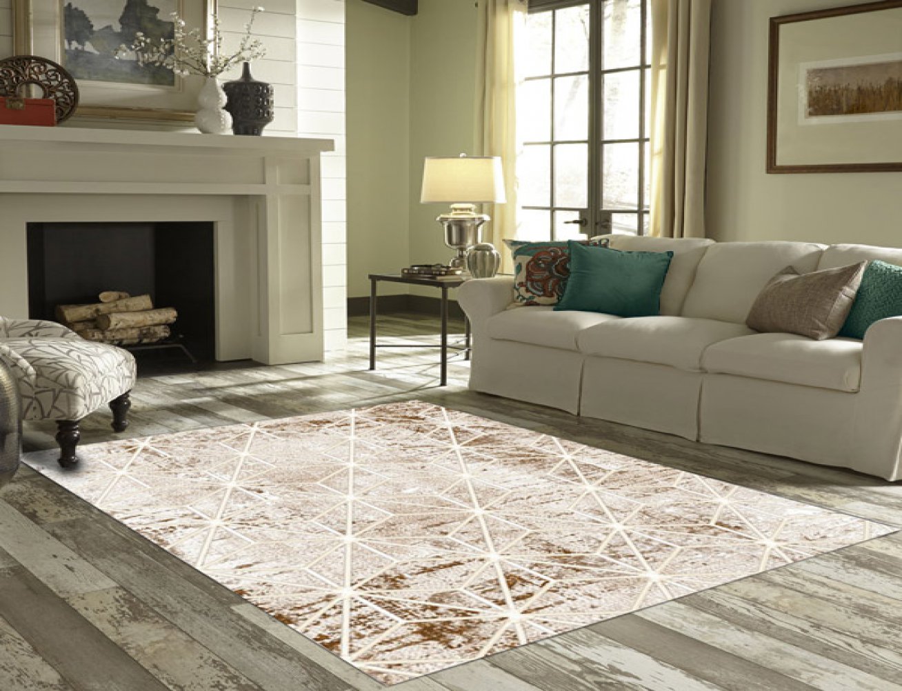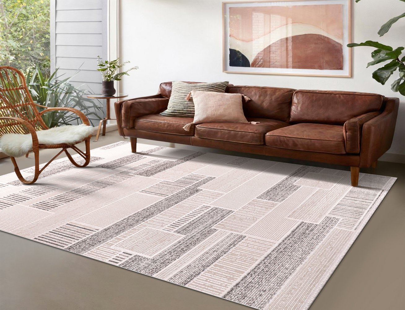 MODERN BASKILI KİLİM 91KREM