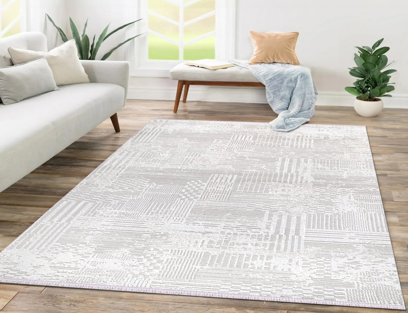 MODERN BASKILI KİLİM 14BEYAZ