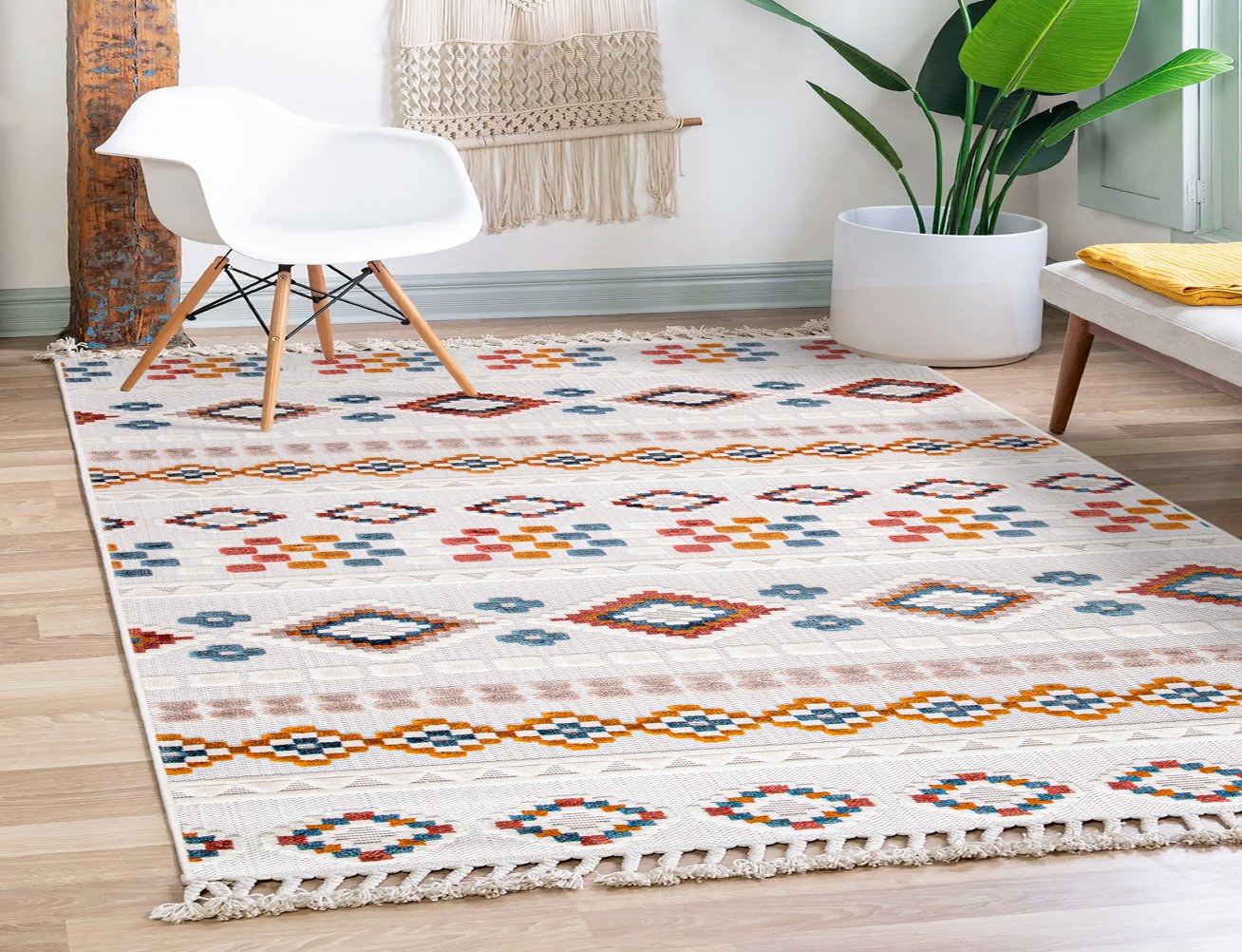 MODERN BASKILI KİLİM 51BEYAZ
