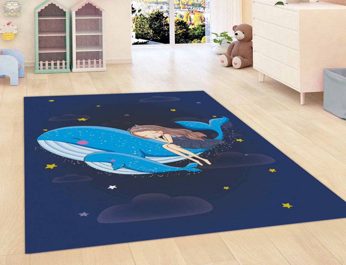 MODERN BASKILI ÇOCUK ODASI BEBEK ODASI KİLİMİ 65MAVİ