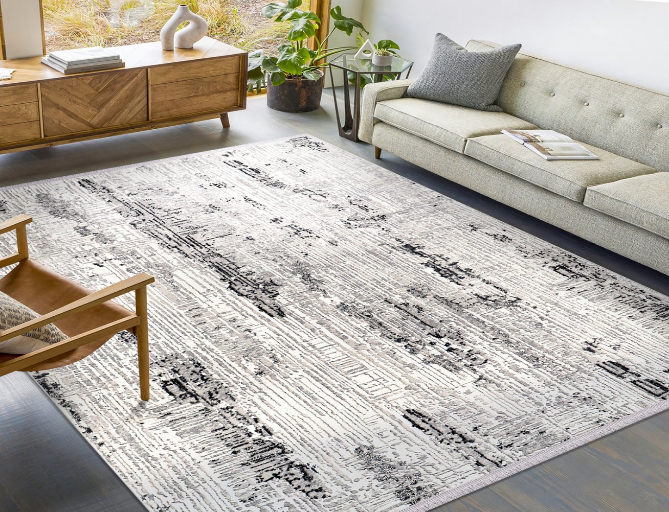 MODERN BASKILI KİLİM 86GRİ