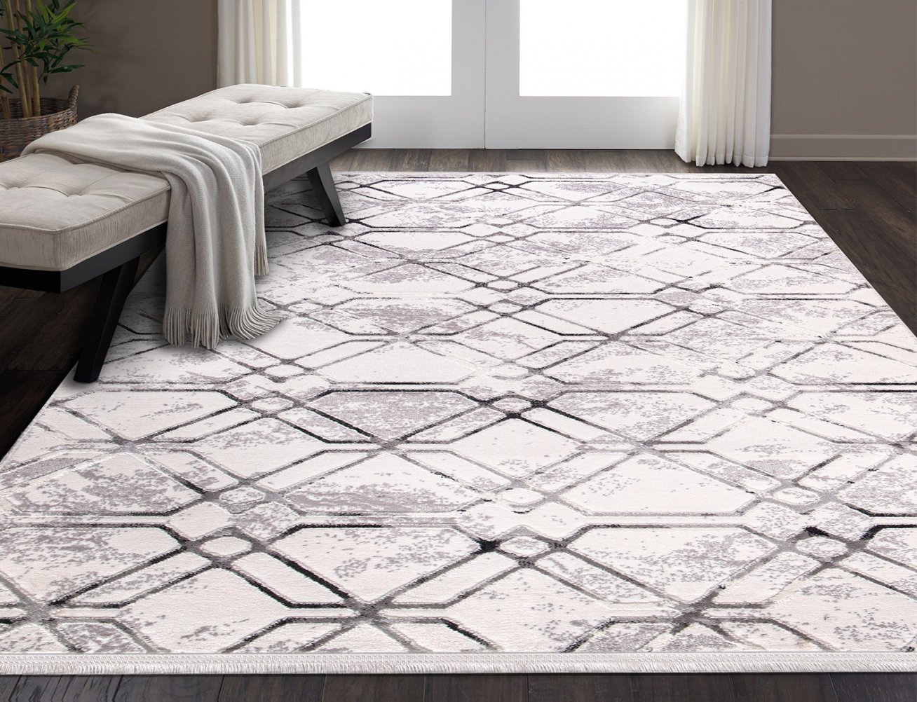 MODERN BASKILI KİLİM 76BEYAZ
