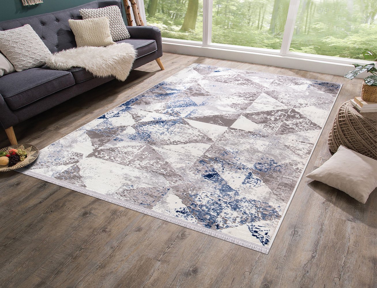 MODERN BASKILI KİLİM 96MAVİ
